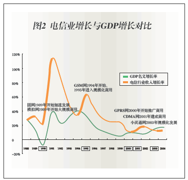 截至2007年底,中国电信和中国移动运营收入占传统电信业收入比重已超过了70%,因此可以说,其发展轨迹在很大程度上已代表了行业发展轨迹,其增长模式也在很大程度上代表着行业主流。而两家由分拆后形成的公司分别采取了“以客户为中心”和“以产品为中心”的发展道路。