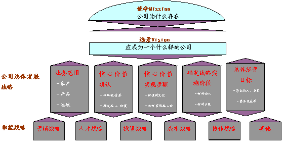 从以上两图可以看出,商业模式和发展战略在许多要素方面有着惊人的相似,商业模式更强调结构性和逻辑性,发展战略则更强调层次性和可执行性。前述案例使用商业模式如何制定战略,则是把两者结合起来使用,实现了优势整合,取得了独特的效果。
