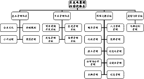 以某国有发电集团为例,一个标准化的管理体系内包含:基本管理、专业管理、保障支撑、监督评价等涉及发电企业生产经营各方面的内容(见图 2 )。但是从实践看,发电企业内部以上三个阶段形成的体系文件仍然同时并存,只是所占的比重和适用范围不同,缺乏协调性和统一性。表现在制度建设层面主要有以下不足: