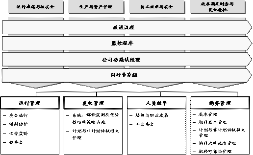 以流程为中心的管理体系最显著的特点在于它建立的是以运行管理、发电管理、人员效率、财务管理流程驱动的责权体系而不是专业职能分工的管理架构。这样的责权体系强调的是流程链上的每一个环节共同对结果负责,而不是简单的界定这是哪个部门的责任或那是谁的原因,由此激发组织持续改进和创新的动力。