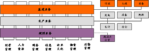 首先,在管理结构层面要充分考虑电厂运营的任务,比如有些电厂既有发电运行,也有三产管理,还可能有电厂的基建。各业务的经营任务、组织能力的要求不同(比如图 7 所示的基建和发电的比较),当然管理方式也不一样。比较好的解决方案是建立分业务的管理结构(见图 8 ),逐一设计管理每项业务的管理流程和业务流程。